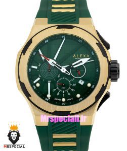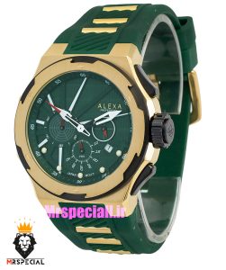 معرفی ساعت الکسا مردانه اورجینال کرنوگراف بند رابر سبز قاب طلایی صفحه سبز 021113 ALEXA Professional