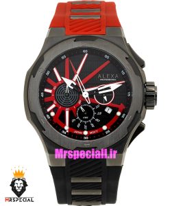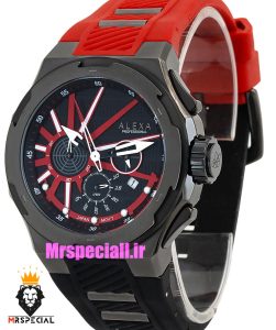 معرفی ساعت الکسا مردانه اورجینال کرنوگراف بند رابر مشکی قرمز قاب مشکی صفحه مشکی 021115 ALEXA Professional
