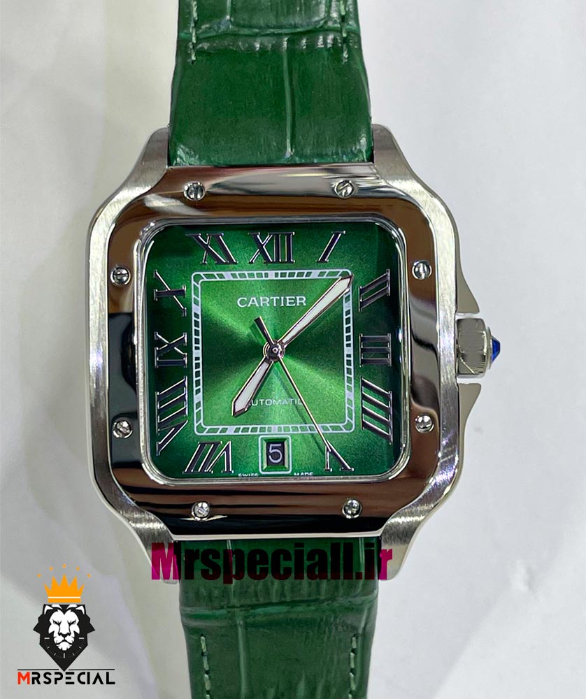 ساعت کارتیه مردانه مدل دسانتوس اتوماتیک بند چرم سبز صفحه سبز 021450 Cartier Santos de