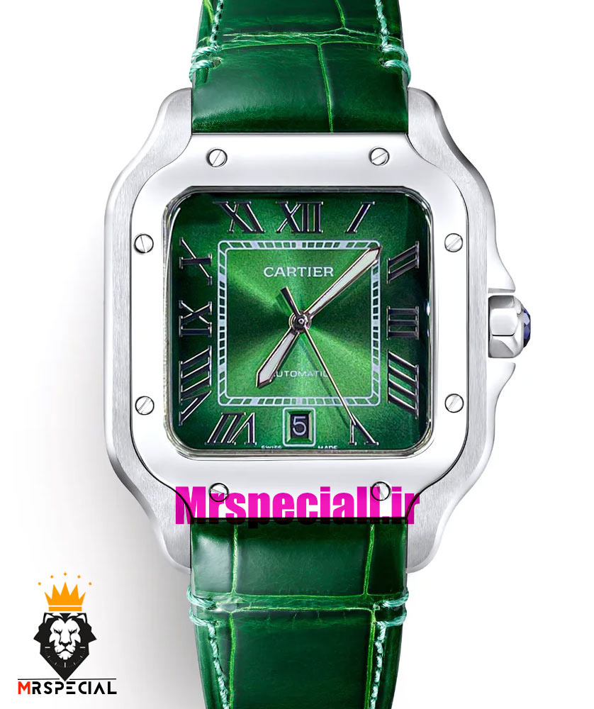 معرفی ساعت کارتیه مردانه مدل دسانتوس اتوماتیک بند چرم سبز صفحه سبز 021450 Cartier Santos de