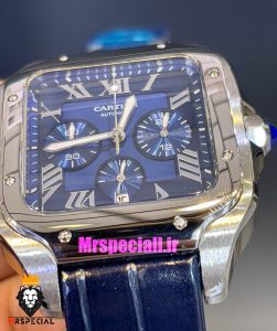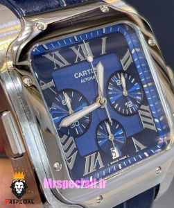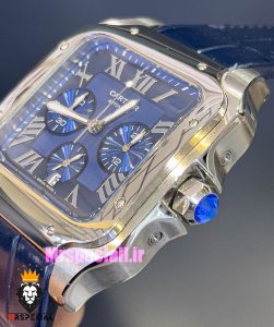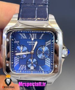 معرفی ساعت کارتیه مردانه مدل دسانتوس کرنوگراف بند چرم قاب استیل صفحه ابی 021133 Cartier Santos de
