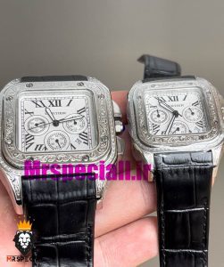 ساعت مچی ست زنانه و مردانه کارتیر مدل سانتوس 100 کوارتز کرنوگراف با قاب استیل حکاکی خاص