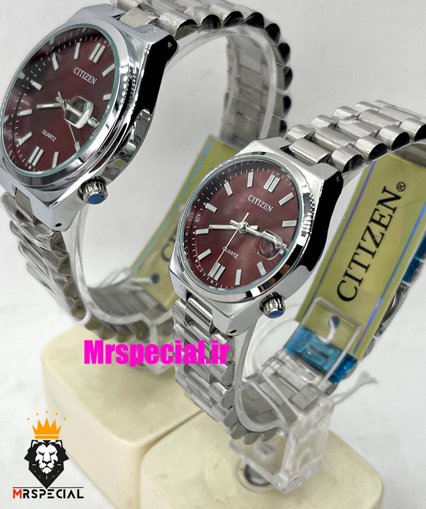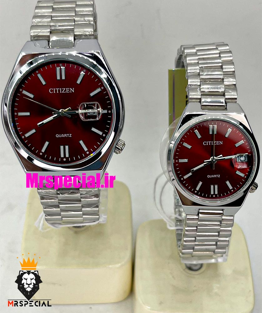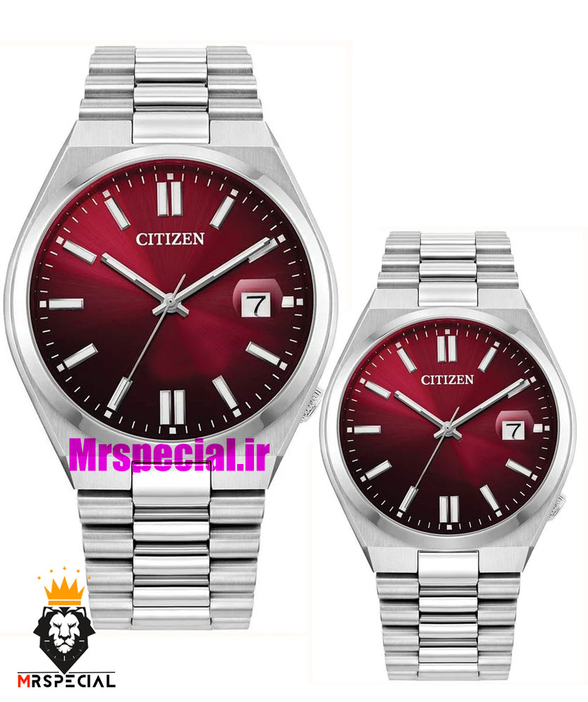 ساعت سیتیزن ست مردانه و زنانه مدل سویوسا کوارتز استیل صفحه قرمز 021323 CITIZEN TSUYOSA