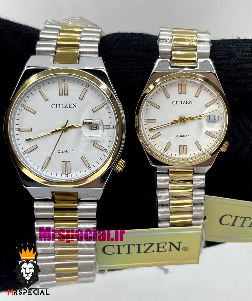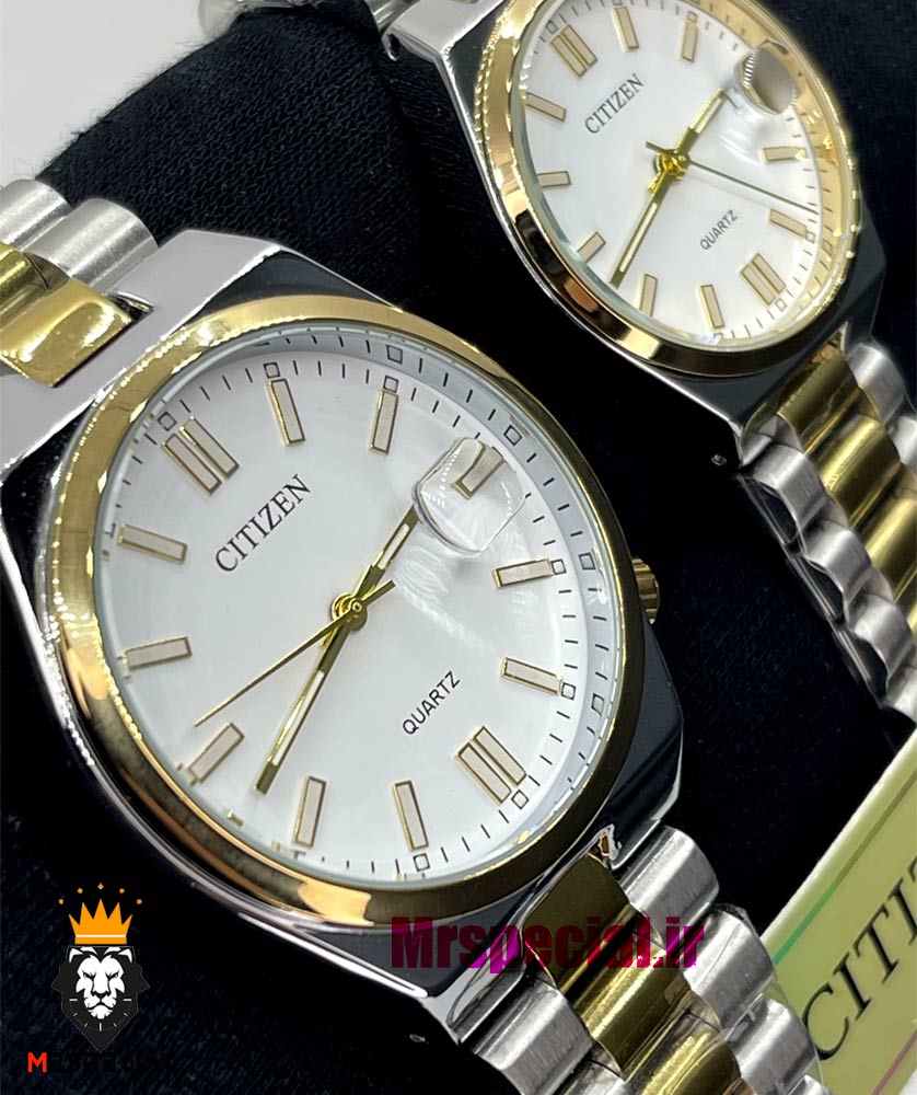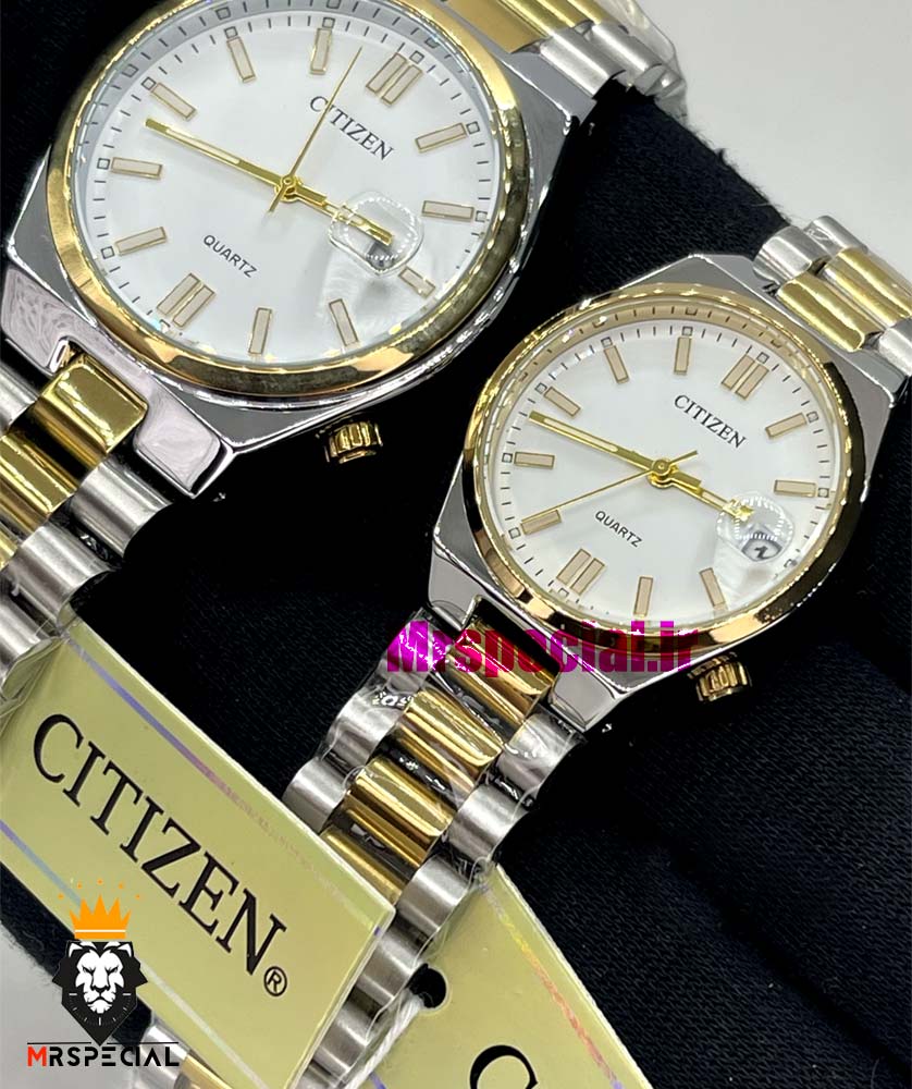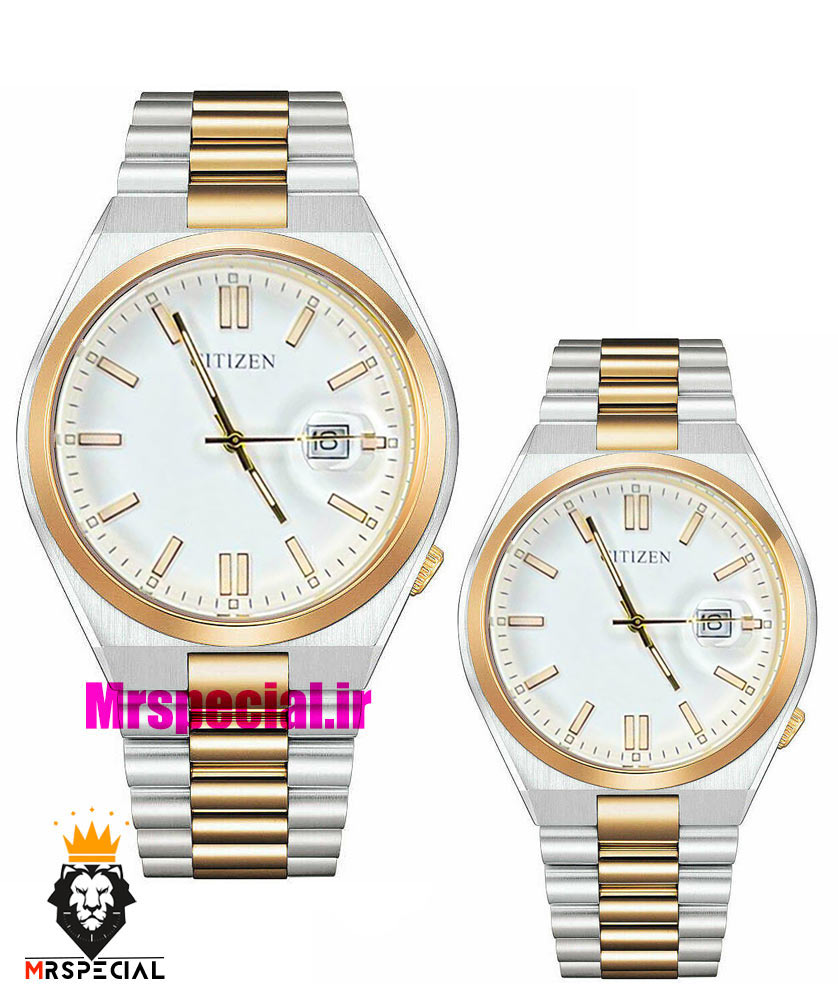 ساعت سیتیزن ست مردانه و زنانه مدل سویوسا کوارتز دورنگ طلایی صفحه سفید 020737 CITIZEN TSUYOSA