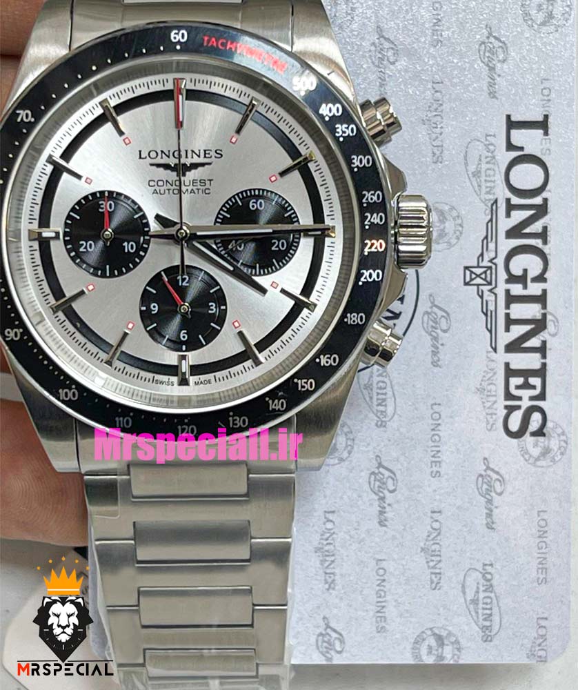 ساعت لونژین مردانه کرنوگراف استیل صفحه سفید LONGINES Conquest 021377