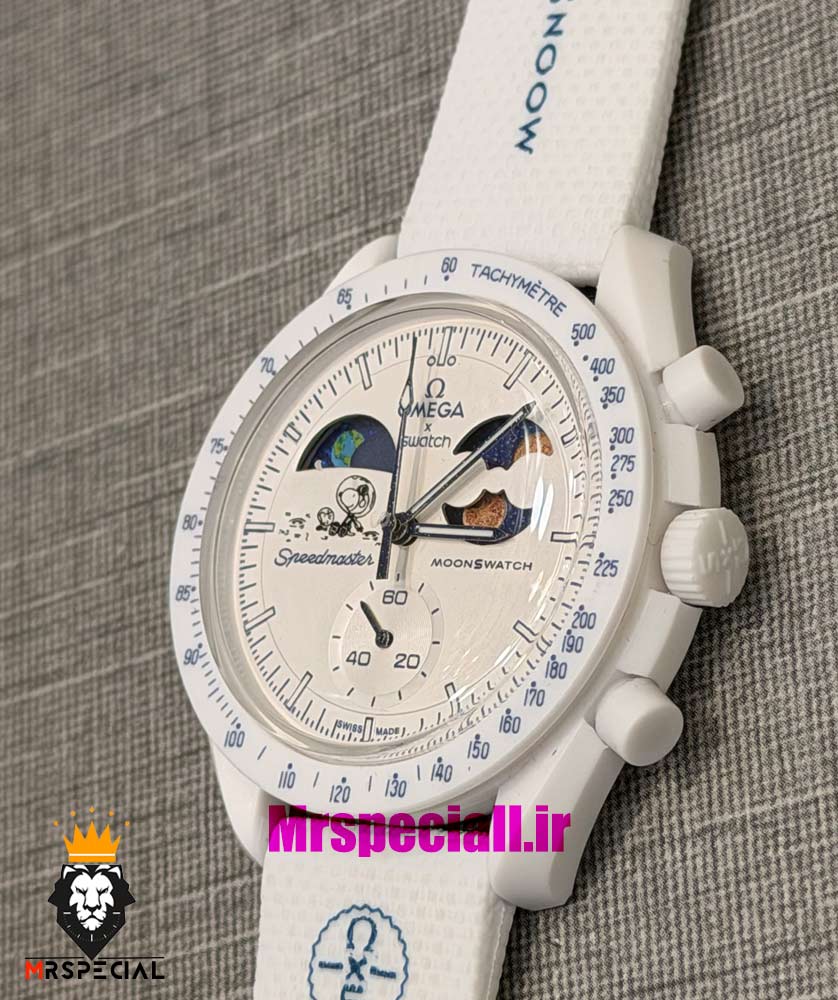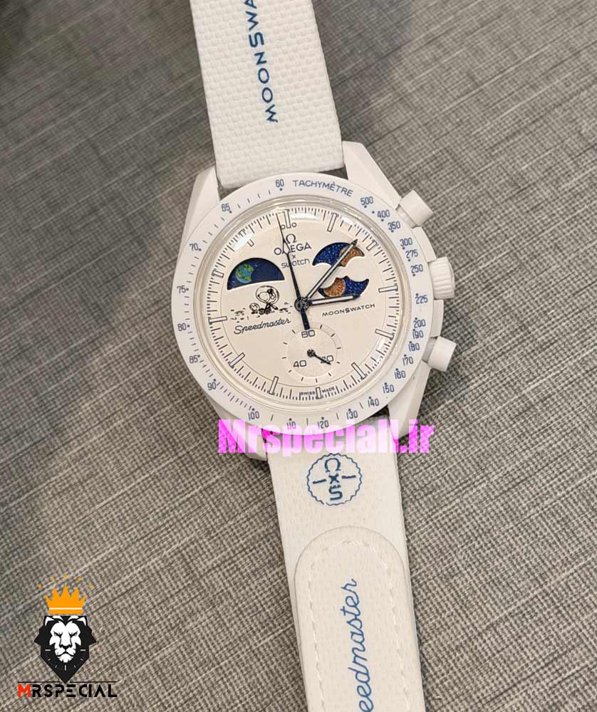 معرفی ساعت امگا سواچ اسنوپی کرنوگراف سفید 021484 MOONSHAINE GOLD Snoopy White