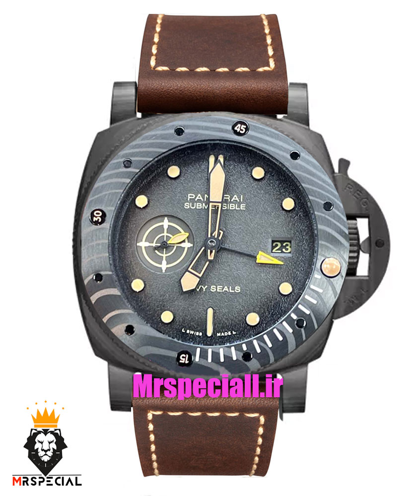 معرفی ساعت مردانه پنرای اتوماتیک بند چرم قهوه ای صفحه مشکی 021405 Panerai Luminor Submersible