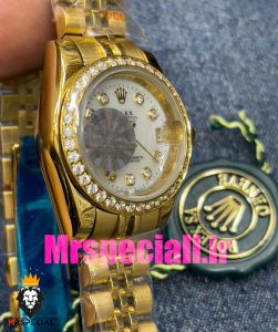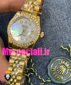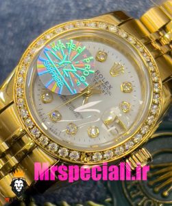 معرفی ساعت رولکس زنانه مدل دیت جاست اتوماتیک طلایی صفحه سفید قاب نگین 020874 ROLEX DATEJUST Diamond