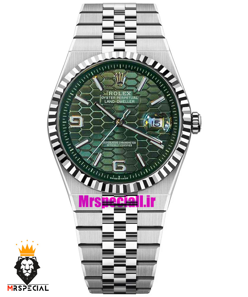 معرفی ساعت رولکس مردانه مدل دیت جاست لند دولر اتوماتیک استیل صفحه سبز 021421 ROLEX DATEJUST LAND DWELLER