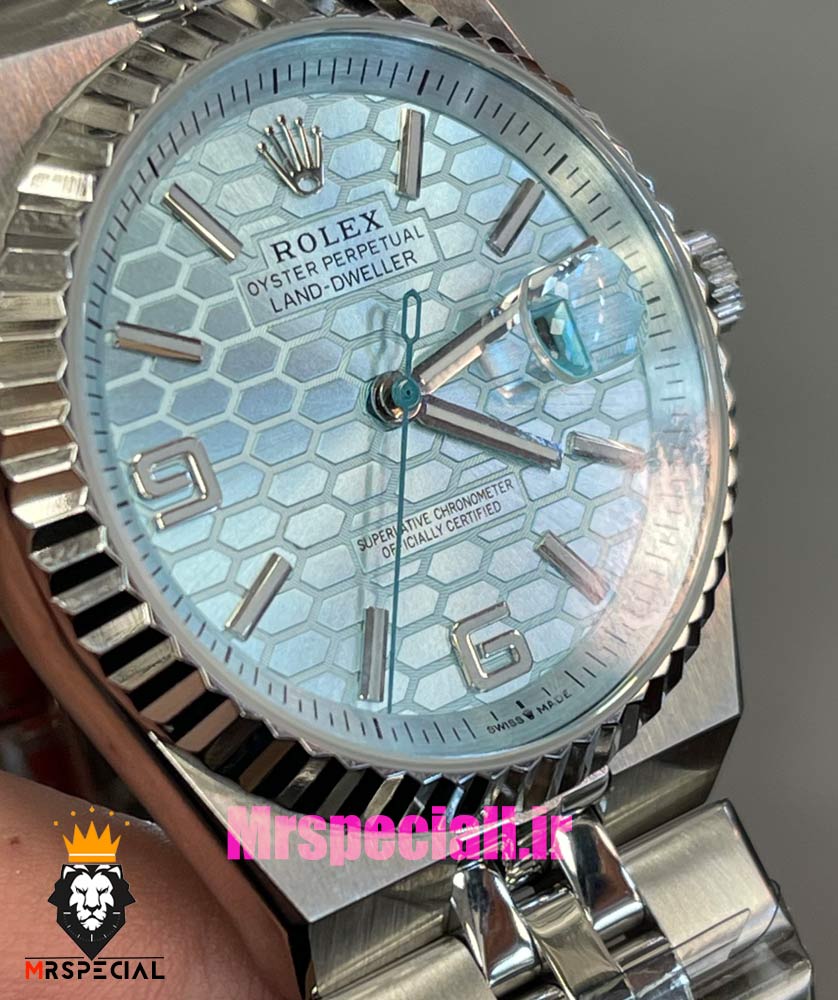 ساعت رولکس مردانه مدل دیت جاست لند دولر اتوماتیک استیل صفحه تیفانی 021452 Rolex Land-Dweller Platinum