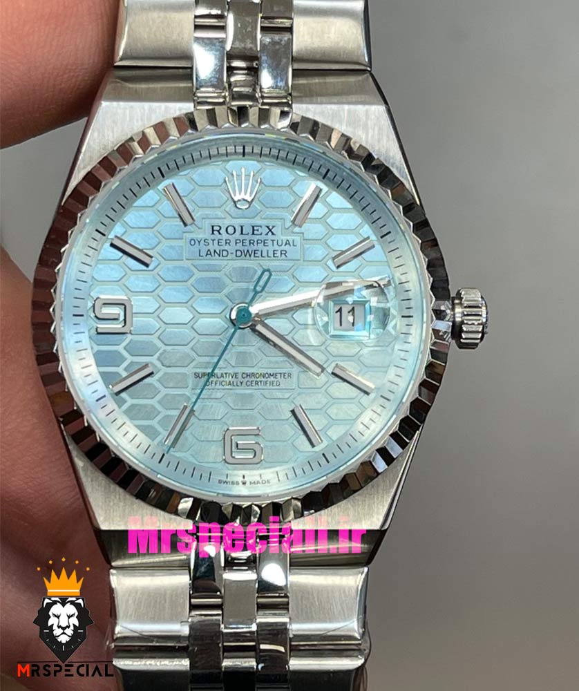 معرفی ساعت رولکس مردانه مدل دیت جاست لند دولر اتوماتیک استیل صفحه تیفانی 021452 Rolex Land-Dweller Platinum