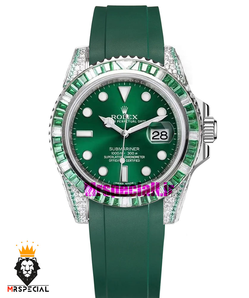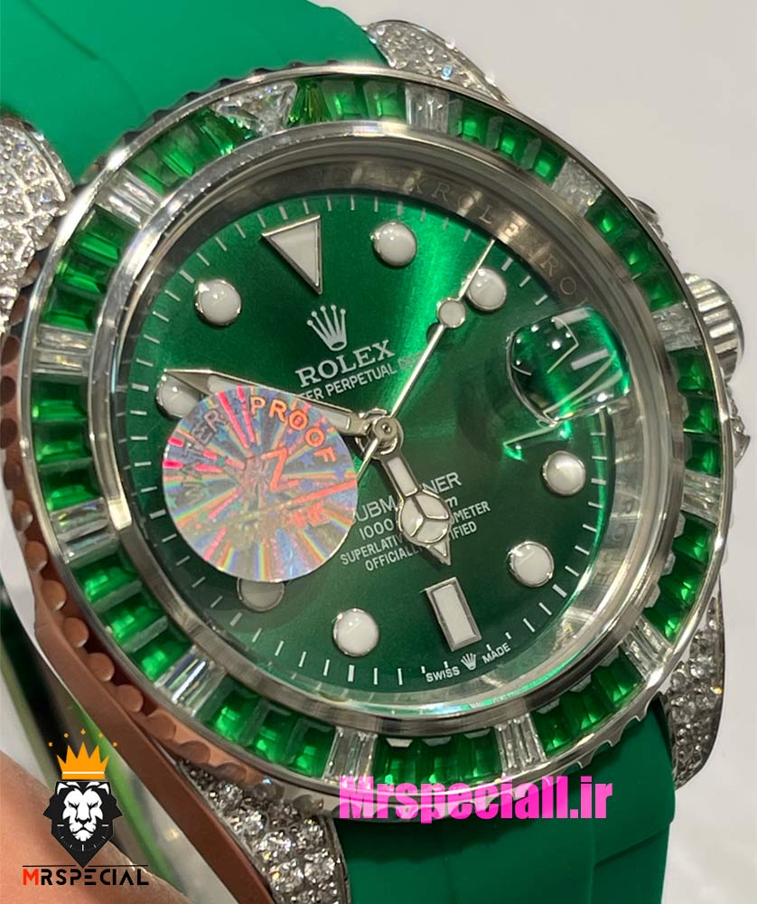 معرفی ساعت رولکس مدل ساب مارینر اتوماتیک فول نگین بند رابر سبز صفحه سبز 021435 Rolex SUB MARINER Diamond