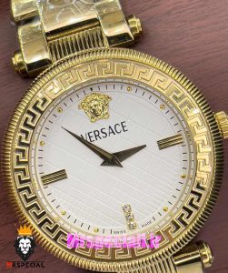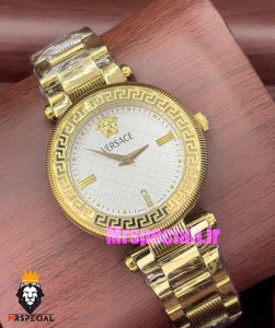 معرفی ساعت ورساچه زنانه کوارتز طلایی صفحه سفید 021038 VERSACE