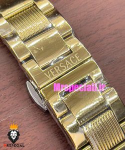 قفل این ساعت استیل پروانه ای با حک برند ورساچه میباشد .